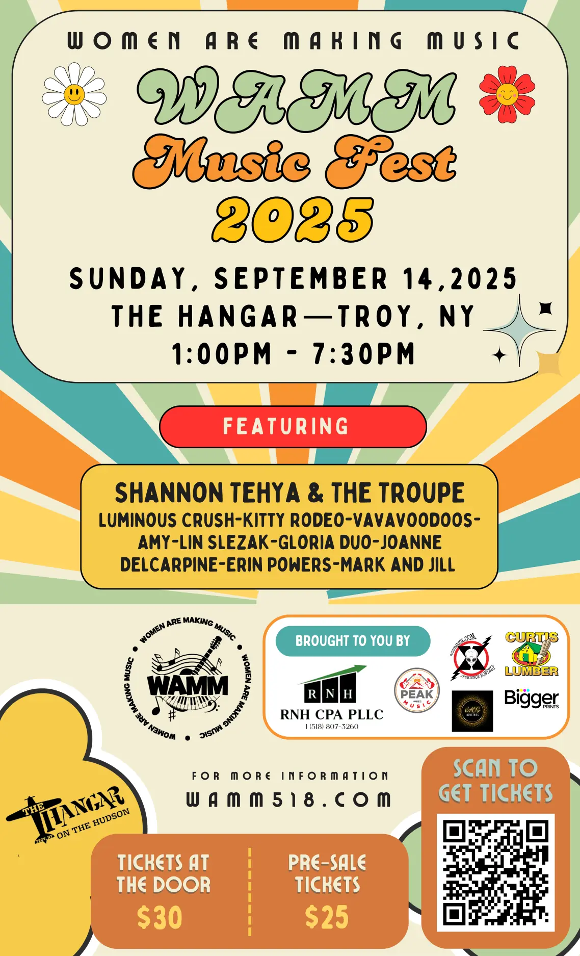 At Peak Music Studios, we believe music changes lives. It empowers, inspires, and gives people of all ages the confidence to share their voice with the world. That’s why we’re proud to co-produce the first-ever WAMM Fest (Women Are Making Music), happening Sunday, September 14th at The Hangar in Troy, New York. This all-day celebration features women-led music across genres—from rootsy Americana to riotous punk and soulful blues, alongside a marketplace of women-owned businesses. It’s a space where creativity, equity, and community come together.